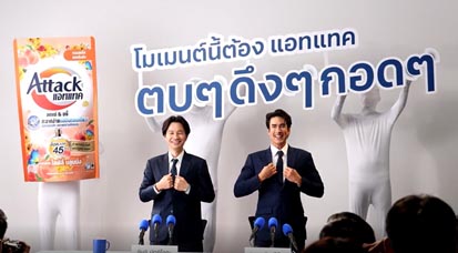 บริษัท คาโอ อินดัสเตรียล (ประเทศไทย) จำกัด ผู้ผลิตสินค้าอุปโภคและเคมีภัณฑ์จากประเทศญี่ปุ่น เปิดตัวแคมเปญใหม่ของผลิตภัณฑ์ซักผ้า แอทแทค (Attack) ภายใต้แนวคิด “อยากให้ผ้าหอมขึ้น โมเมนต์นี้ต้อง แอทแทค ตบๆ ดึงๆ กอดๆ” นำเสนอ เทคโนโลยีแคปซูลน้ำหอม (Fragrance Capsule Technology) ที่ช่วยให้เสื้อผ้ากระจายกลิ่นหอมได้ตลอดวันเพียงแค่ขยับร่างกาย ตอบโจทย์ผู้บริโภคยุคใหม่ โดยเฉพาะกลุ่มเวิร์กกิ้งมัมและคนรุ่นใหม่ที่มีไลฟ์สไตล์เร่งรีบ แต่ยังให้ความสำคัญกับเสื้อผ้าที่สะอาดและมีกลิ่นหอมติดทนนาน เพื่อช่วยเสริมความมั่นใจในทุกกิจกรรมของชีวิตประจำวัน