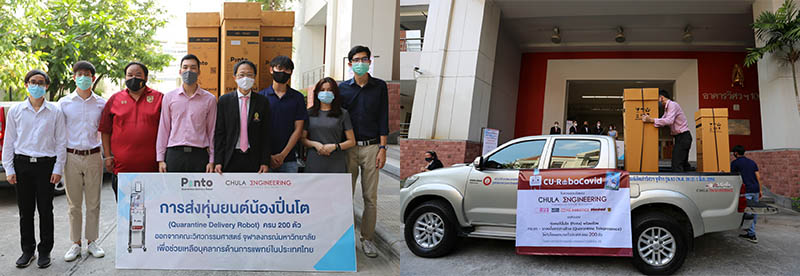 วิศวฯ จุฬาฯ ส่งกองทัพหุ่นยนต์ปิ่นโตช่วยแพทย์และพยาบาล กู้วิกฤติโรคระบาด COVID-19วิศวฯ จุฬาฯ ส่งกองทัพหุ่นยนต์ปิ่นโตช่วยแพทย์และพยาบาล กู้วิกฤติโรคระบาด COVID-19 รอบใหม่ทั่วประเทศ คณะวิศวกรรมศาสตร์ จุฬาลงกรณ์มหาวิทยาลัย ร่วมกับสมาคมนิสิตเก่า จุฬาลงกรณ์มหาวิทยาลัย บริษัท HG Robotics จำกัด และ บริษัท Obodroid จำกัด จัดส่งหุ่นยนต์ขนส่งในพื้นที่ติดเชื้อ “ปิ่นโต” จำนวนร่วม 200 ตัว และระบบสื่อสารทางไกล “กระจก” กว่า 1,000 ตัว ลงพื้นที่ทั่วประเทศ เพื่อช่วยเหลือบุคลากรทางการแพทย์ของไทยให้พร้อมรับกับการระบาดรอบใหม่ของ COVID-19 ศาสตราจารย์ ดร.สุพจน์ เตชวรสินสกุล คณบดี คณะวิศวกรรมศาสตร์ จุฬาลงกรณ์มหาวิทยาลัย เปิดเผยว่า จากการมอบหุ่นยนต์ขนส่งในพื้นที่ติดเชื้อ “ปิ่นโต” และระบบสื่อสารทางไกล “กระจก” แก่โรงพยาบาลต่าง ๆ ที่ต้องรับหน้าที่ในการดูแลรักษาผู้ป่วยติดเชื้อ COVID-19 ในการระบาดรอบแรกนั้นพบว่าได้รับการประเมินผลจากบุคลากรทางการแพทย์ว่าสามารถลดความเสี่ยงและเพิ่มประสิทธิภาพในการรักษาและดูแลผู้ป่วยติดเชื้อได้เป็นอย่างดี ซึ่งตรงต่อวิสัยทัศน์และพันธกิจของ วิศวฯ จุฬาฯ ที่มุ่งอุทิศองค์ความรู้ที่มีเพื่อช่วยเหลือภาคสังคมในด้านต่างๆ เพื่อยกระดับคุณภาพชีวิตของคนในสังคมไทย