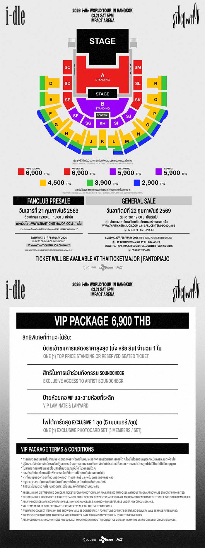 สำหรับทัวร์ [Syncopation] ถือเป็นเวิลด์ทัวร์ครั้งที่ 4 ของพวกเธอ หลังจากประสบความสำเร็จจากทัวร์ [JUST ME ( )I-DLE] ในปี 2565, [I am FREE-TY] ในปี 2566 และ [i-DOL] ในปี 2567 โดยคอนเซ็ปต์ “Syncopation” มาจากเทคนิคดนตรีที่เน้นจังหวะนอกกรอบ สื่อถึงพลัง ความมั่นใจ และเอกลักษณ์อันไม่จำกัดของ i-dle ที่พร้อมส่งต่อความสนุกในแบบที่คาดไม่ถึงให้กับแฟนๆ ทั่วโลก และสำหรับกรุงเทพฯ ก็เป็นอีกหนึ่งเมืองสำคัญของเวิลด์ทัวร์ครั้งนี้ด้วย พลังความนิยมของ i-dle ยังคงแรงต่อเนื่อง หลังจากปิดฉากทัวร์อารีน่าญี่ปุ่นครั้งแรกอย่างสวยงาม เมื่อเดือนตุลาคมที่ผ่านมา พร้อมคว้ารางวัล “FANS' CHOICE” จากเวที 2025 MAMA AWARDS ตอกย้ำกระแสความนิยมระดับสากล NEVERLAND ชาวไทย ล็อกคิวรอไปร่วมสร้างความทรงจำครั้งใหม่กับ i-dle ในคอนเสิร์ต 2026 i-dle WORLD TOUR [Syncopation] IN BANGKOK ไว้ได้เลย เปิดขายบัตรรอบ FANCLUB PRESALE วันเสาร์ที่ 21 กุมภาพันธ์ 2569 เวลา 12.00 – 18.00 น. ผ่านทาง www.thaiticketmajor.com เท่านั้น *เปิดจำหน่ายทุกโซน ทุกราคา ในจำนวนจำกัด* และเปิดขายบัตรรอบทั่วไปในวันอาทิตย์ที่ 22 กุมภาพันธ์ 2569 ตั้งแต่เวลา 12.00 น. เป็นต้นไป ผ่านทาง www.thaiticketmajor.com, เคาน์เตอร์ไทยทิกเก็ตเมเจอร์ทุกสาขา, Call Center 02-262-3456 *เปิดจำหน่ายทุกโซนยกเว้นโซน SE/SF/SJ/SK/D/E/R/Q* และผ่านทาง www.fantopia.io *จำหน่ายบัตรเฉพาะโซน SE/SF/SJ/SK/D/E/R/Q เท่านั้น** บัตรราคา VIP PACKAGE 6,900 (บัตรยืนและนั่ง) / 5,900 (บัตรยืนและนั่ง) / 4,500 / 3,900 และ 2,900 บาท พร้อมสิทธิพิเศษสุดเอ็กซ์คลูซีฟมากมาย ติดตามรายละเอียดเพิ่มเติมได้ที่ Facebook และ TikTok : @imethailand / X และ Instagram : @ime_th #아이들 #idle #Syncopation #2026_idle_WORLDTOUR #2026_idle_WORLDTOURinBKK #iMeThailand ![]() |