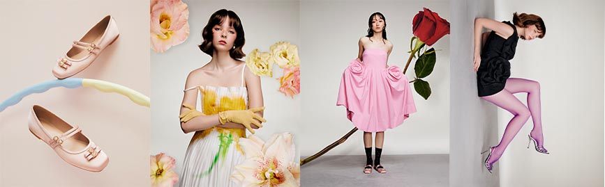 ไฮไลต์ประจำคอลเลกชั่นนี้ อาทิ เดรสยาวพลีทกราเดียน สะท้อนเสน่ห์ของแสงเหนือ กระโปรงปักเลื่อมไล่สี ที่เคลื่อนไหวแวววาวทุกย่างก้าว เดรสสั้นพิมพ์ลายเพนกวิน เติมความสนุกสดใส เดรสผ้านิตชายโค้งอสมมาตร อินสไปร์จากรูปทรงแสงเหนือ และเสื้อยืดออมเบรโอเวอร์ไซส์ สำหรับลุคเบสิกแต่มีดีเทล คอมพลีตลุคด้วยแอคเซสเซอรี่โทนเดียวกัน ทั้ง กระเป๋ารูปปลาโลมา กระเป๋าสะพายสีฟ้าน้ำแข็ง หมวกบักเก็ตขาว–น้ำเงิน รองเท้าบัลเล่ต์สีไอวอรี ส้นสูงสีนู้ด และเครื่องประดับดีไซน์ทรงน้ำแข็งในโทนน้ำตาลอ่อน–เบจ พร้อมเพิ่มประกายความน่ารักสดใสในทุกลุคของสาวลิน อราวด์ ![]() และอีกหนึ่งคอลเลกชั่นสุดแกลม Ruby ที่พร้อมชวนทุกคนมาดื่มด่ำกับความเหนือระดับของการดีไซน์เสื้อผ้าที่โดดเด่นคัทติ้งอันประณีตพร้อมด้วยการออกแบบที่หรูหรา ถ่ายทอดแรงบันดาลใจจากความงดงามของการเปลี่ยนแปลงตามธรรมชาติในดินแดนขั้วโลกเหนือ ผ่านการตีความอย่างร่วมสมัย สะท้อนความเคลื่อนไหวและพลังของธรรมชาติ ผสานเข้ากับเทคนิคการออกแบบและรายละเอียดที่เปี่ยมด้วยเสน่ห์เฟมินีน คอลเลกชั่นนี้โดดเด่นด้วยผ้าขมวดเป็นรูปดอกไม้ และพิมพ์ลายออมเบรฟลอรัล ถ่ายทอดความงามของกุหลาบผ่านเฉดสีชมพูหลากโทน ตั้งแต่ชมพูกลีบกุหลาบ ลูกกวาด เบบี้พิงค์ ไปจนถึงพาวเดอร์พิงค์ พร้อมแต่งแต้มด้วยสีนู้ด ขาว และดำ สร้างสมดุลระหว่างความอ่อนหวานคลาสสิกกับความแอลิแกนซ์อย่างลงตัว สะท้อนเสน่ห์ของผู้หญิงที่งดงาม