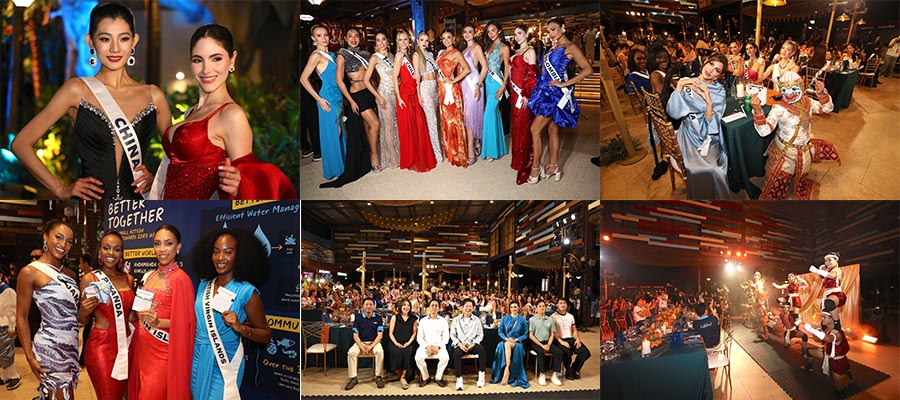 ![]() ช่วงค่ำร่วมดินเนอร์อาหารนานาชาติที่สวนน้ำสุดอลังการ อันดามันดา ภูเก็ต (Andamanda Phuket : The Great Water Kingdom) จัดไว้ต้อนรับ โดยมี คุณณวัฒน์ อิสรไกรศีล ประธานเจ้าหน้าที่บริหาร บริษัท มิสแกรนด์ อินเตอร์เนชั่นแนล จำกัด (มหาชน) รองประธานองค์กร Miss Universe Asiana และ ประธานคณะเจ้าภาพจัดการประกวด Miss Universe ครั้งที่ 74 ประเทศไทย , คุณธีระศักดิ์ ผลงาม คุณธนพัฒน์ นวลสกุล ผู้สนับสนุนหลักจังหวัดภูเก็ต , คุณนฐา ชมเสวี (Mr.Natha Jamasevi) ผู้จัดการทั่วไป อันดามันดา ภูเก็ต และ คุณมุจจรินทร์ น้ำคำภา (Ms.Mutjarin Namkhampa) ผู้อำนวยการฝ่ายขาย อันดามันดา ภูเก็ต คุณวัชรพงษ์ ขลังธรรมเนียม (Mr.Vatcharapong Klangtumnium) ผู้อำนวยการกลุ่มงานการตลาด อันดามันดา ภูเก็ต พร้อมมื้อพิเศษและมอบของที่ระลึก Turtle Wish Band โดยกลุ่มวิสาหกิจชุมชนบ้านไม้ขาว และ ผ้ามัดย้อมสีธรรมชาติ โดย Wanna Nature Dyed Studio นางงามตื่นตากับโชว์ Guardians Of Andamanda การแสดงสุดพิเศษที่หลอมรวมนาฏศิลป์โขน ผสานความแข็งแกร่งแห่งมวยคาดเชือก ตำนานนักสู้แห่งสยาม สร้างความประทับใจให้ผู้มาเยือนได้ไม่รู้ลืม